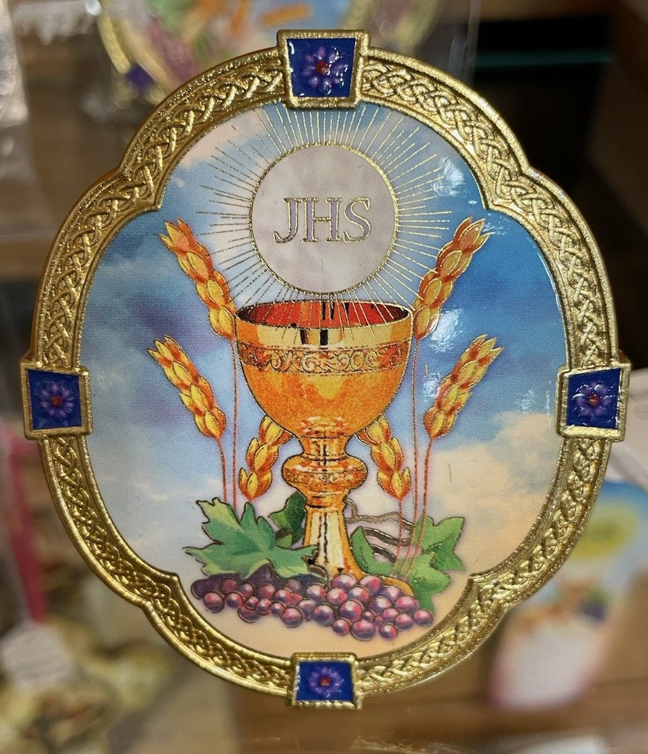 {"id":7379246940227,"title":"CHALICE ON EASEL FLORAL BKGRND","handle":"chalice-on-easel-floral-bkgrnd","description":"First Communion Easel has a picture of a chalice, Host, wheat, and grapes. There are rays of light coming from the Host. There is a border around the picture that is gold with some flowers. Made in Italy.","published_at":"2025-02-27T16:40:21","created_at":"2025-02-27T16:40:21","vendor":"HIRTEN","type":"COMMUNION","tags":["COMMUNION","Communion and Confirmation","Type_Plaque"],"price":599,"price_min":599,"price_max":599,"price_varies":false,"compare_at_price":null,"compare_at_price_min":0,"compare_at_price_max":0,"compare_at_price_varies":true,"all_variant_ids":[42132450017347],"variants":[{"id":42132450017347,"product_id":7379246940227,"product_handle":"chalice-on-easel-floral-bkgrnd","title":"Default Title","option1":"Default Title","option2":null,"option3":null,"sku":"990-0705","requires_shipping":true,"taxable":true,"featured_image":null,"image_id":null,"available":true,"name":"CHALICE ON EASEL FLORAL BKGRND - Default Title","options":["Default Title"],"price":599,"weight":40,"compare_at_price":null,"inventory_quantity":1,"inventory_management":"shopify","inventory_policy":"deny","inventory_in_cart":0,"inventory_remaining":1,"incoming":false,"next_incoming_date":null,"taxable":true,"barcode":null}],"available":true,"images":["\/\/marytown-press-gift-store.myshopify.com\/cdn\/shop\/files\/990-07051.jpg?v=1741016315","\/\/marytown-press-gift-store.myshopify.com\/cdn\/shop\/files\/990-07052.jpg?v=1741016315"],"featured_image":"\/\/marytown-press-gift-store.myshopify.com\/cdn\/shop\/files\/990-07051.jpg?v=1741016315","options":["Title"],"url":"\/products\/chalice-on-easel-floral-bkgrnd"}