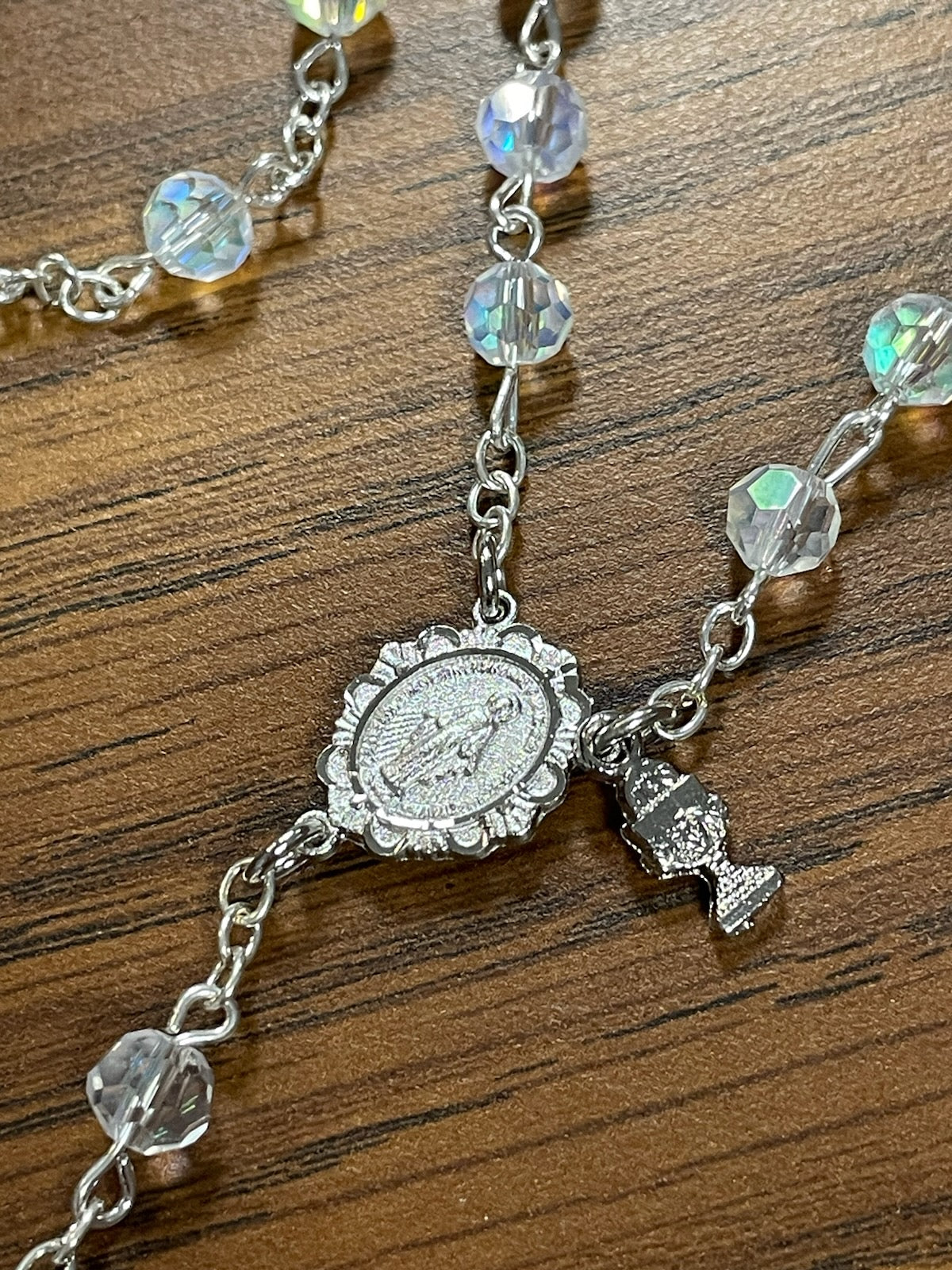 {"id":7373411319875,"title":"CRYSTAL COMMUNION ROSARY","handle":"crystal-communion-rosary-1","description":"First Communion rosary has clear crystal beads. The centerpiece is a rhodium Miraculour Medal, and there is a tiny rhodium chalice attached to it. \u003cbr\u003e\u003cbr\u003eUpc:735365995714","published_at":"2025-02-13T12:32:40","created_at":"2025-02-13T12:32:40","vendor":"McVan Inc. \u0026 Piccolo Italia","type":"COMMUNION","tags":["Color_Clear","COMMUNION","Communion and Confirmation","Style_Girl","Type_Five Decade"],"price":4799,"price_min":4799,"price_max":4799,"price_varies":false,"compare_at_price":null,"compare_at_price_min":0,"compare_at_price_max":0,"compare_at_price_varies":true,"all_variant_ids":[42105793773635],"variants":[{"id":42105793773635,"product_id":7373411319875,"product_handle":"crystal-communion-rosary-1","title":"Default Title","option1":"Default Title","option2":null,"option3":null,"sku":"990-0527","requires_shipping":true,"taxable":true,"featured_image":null,"image_id":null,"available":true,"name":"CRYSTAL COMMUNION ROSARY - Default Title","options":["Default Title"],"price":4799,"weight":100,"compare_at_price":null,"inventory_quantity":2,"inventory_management":"shopify","inventory_policy":"deny","inventory_in_cart":0,"inventory_remaining":2,"incoming":false,"next_incoming_date":null,"taxable":true,"barcode":null}],"available":true,"images":["\/\/marytown-press-gift-store.myshopify.com\/cdn\/shop\/files\/990-05273.jpg?v=1740421422","\/\/marytown-press-gift-store.myshopify.com\/cdn\/shop\/files\/990-05271.jpg?v=1740421422","\/\/marytown-press-gift-store.myshopify.com\/cdn\/shop\/files\/990-05272.jpg?v=1740421422"],"featured_image":"\/\/marytown-press-gift-store.myshopify.com\/cdn\/shop\/files\/990-05273.jpg?v=1740421422","options":["Title"],"url":"\/products\/crystal-communion-rosary-1"}