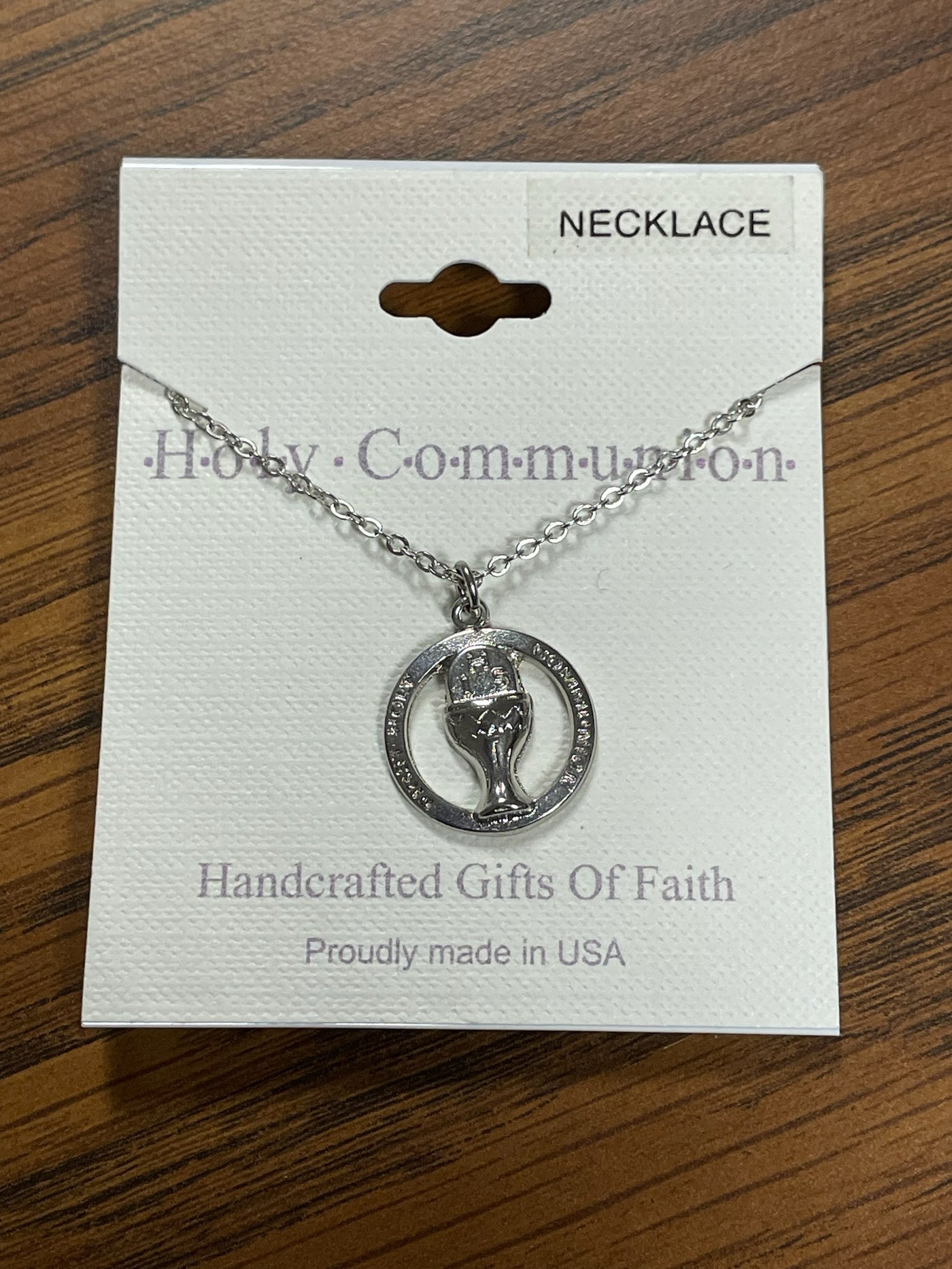 {"id":7373411844163,"title":"SILVER CIRCLE COMM. CHALICE","handle":"silver-circle-comm-chalice","description":"11\/16 x 9\/16 inch polished finish First Holy Communion silver plated pierced circle chalice necklace on an 18 inch stainless steel rhodium plated chain. The circle pendant features a chalice in the center -one of the traditional symbols of the rite of First Holy Communion- and has pierced cutouts on either side of the cup. Around the border of the circle are the words \"First Holy Communion\". Includes an elegant Singer Company card with jewelry attached.","published_at":"2025-02-13T12:33:13","created_at":"2025-02-13T12:33:13","vendor":"SINGER AND SONS, FREDERICK","type":"COMMUNION","tags":["COMMUNION","Communion and Confirmation","Type_Communion Jewelry"],"price":1799,"price_min":1799,"price_max":1799,"price_varies":false,"compare_at_price":null,"compare_at_price_min":0,"compare_at_price_max":0,"compare_at_price_varies":true,"all_variant_ids":[42105794461763],"variants":[{"id":42105794461763,"product_id":7373411844163,"product_handle":"silver-circle-comm-chalice","title":"Default Title","option1":"Default Title","option2":null,"option3":null,"sku":"990-0206","requires_shipping":true,"taxable":true,"featured_image":null,"image_id":null,"available":true,"name":"SILVER CIRCLE COMM. CHALICE - Default Title","options":["Default Title"],"price":1799,"weight":30,"compare_at_price":null,"inventory_quantity":9,"inventory_management":"shopify","inventory_policy":"deny","inventory_in_cart":0,"inventory_remaining":9,"incoming":false,"next_incoming_date":null,"taxable":true,"barcode":null}],"available":true,"images":["\/\/marytown-press-gift-store.myshopify.com\/cdn\/shop\/files\/990-0206.jpg?v=1740157285"],"featured_image":"\/\/marytown-press-gift-store.myshopify.com\/cdn\/shop\/files\/990-0206.jpg?v=1740157285","options":["Title"],"url":"\/products\/silver-circle-comm-chalice"}