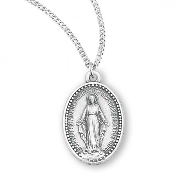 {"id":6727205617731,"title":"SS BEADED EDGE MIRACULOUS 18\"","handle":"ss-beaded-edge-miraculous-18","description":"Sterling Silver Beaded Edge Miraculous Medal Necklace.\u003cbr\u003eBlessed Mother Mary with rays coming out of her extended hands, crushing a serpent under her feet.\u003cbr\u003eOval shaped double sided pendant with beaded edge.\u003cbr\u003eSolid .925 sterling silver.\u003cbr\u003eMedal is die struck.\u003cbr\u003eHand polished and engraved by New England Silversmiths.\u003cbr\u003eDimensions: 0.9\" x 0.5\" (22mm x 13mm)\u003cbr\u003eWeight of medal: 2.6 Grams.\u003cbr\u003e18\" Genuine rhodium plated curb chain.\u003cbr\u003eMade in USA.\u003cbr\u003eDeluxe velvet gift box.","published_at":"2022-09-01T17:23:30","created_at":"2022-09-01T17:23:30","vendor":"HMH\/Regina Manufacturing","type":"MEDALS","tags":["Chain Size_18\"","Material_Sterling Silver","Type_Miraculous Medal"],"price":5200,"price_min":5200,"price_max":5200,"price_varies":false,"compare_at_price":null,"compare_at_price_min":0,"compare_at_price_max":0,"compare_at_price_varies":true,"all_variant_ids":[40161465958467],"variants":[{"id":40161465958467,"product_id":6727205617731,"product_handle":"ss-beaded-edge-miraculous-18","title":"Default Title","option1":"Default Title","option2":null,"option3":null,"sku":"931-0133","requires_shipping":true,"taxable":true,"featured_image":null,"image_id":null,"available":true,"name":"SS BEADED EDGE MIRACULOUS 18\" - Default Title","options":["Default Title"],"price":5200,"weight":60,"compare_at_price":null,"inventory_quantity":1,"inventory_management":"shopify","inventory_policy":"deny","inventory_in_cart":0,"inventory_remaining":1,"incoming":false,"next_incoming_date":null,"taxable":true,"barcode":null}],"available":true,"images":["\/\/marytown-press-gift-store.myshopify.com\/cdn\/shop\/files\/S315218_1.jpg?v=1746477839","\/\/marytown-press-gift-store.myshopify.com\/cdn\/shop\/files\/S3152X.jpg?v=1746477869","\/\/marytown-press-gift-store.myshopify.com\/cdn\/shop\/files\/S3152.jpg?v=1746477906"],"featured_image":"\/\/marytown-press-gift-store.myshopify.com\/cdn\/shop\/files\/S315218_1.jpg?v=1746477839","options":["Title"],"url":"\/products\/ss-beaded-edge-miraculous-18"}