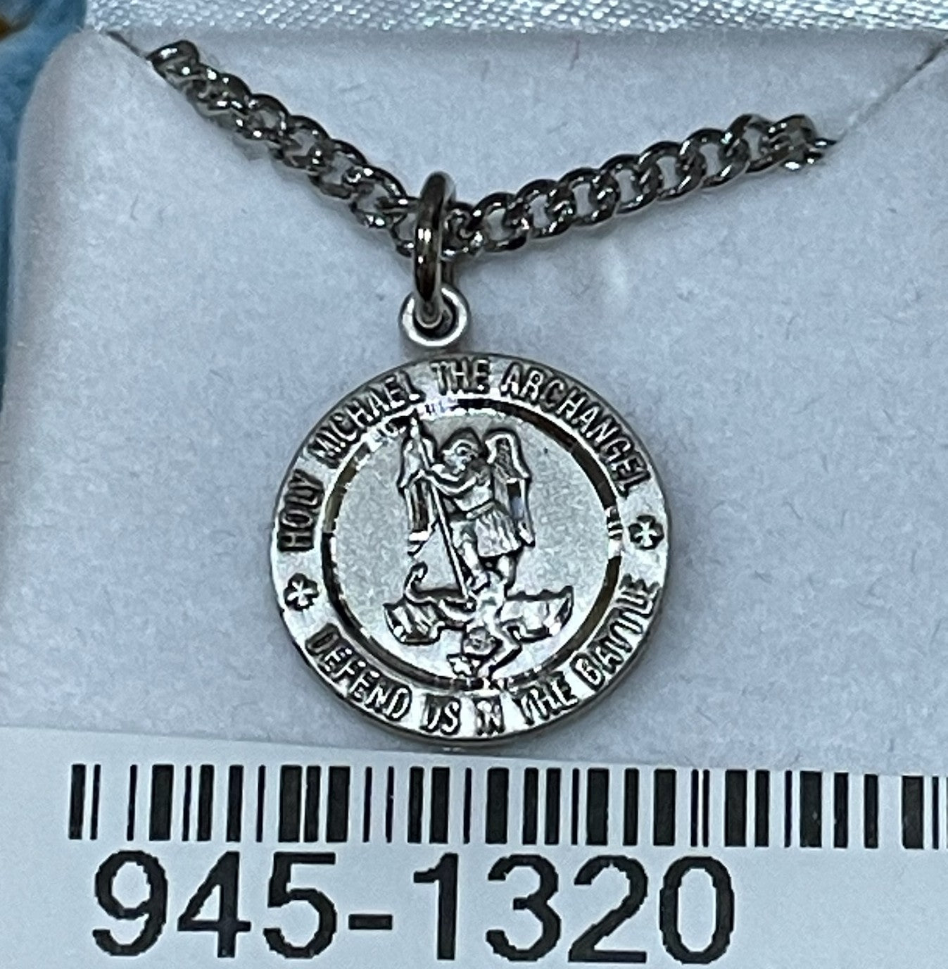{"id":6727207419971,"title":"SS SM ST MICHAEL ROUND 18\"","handle":"ss-sm-st-michael-round-18","description":"Saint Michael round medal-pendant. It says, \"Holy Michael The Archangel Defend Us In The Battle.\"\u003cbr\u003eSolid .925 sterling silver.\u003cbr\u003eDetail depicts Archangel Michael defeating the devil.\u003cbr\u003eSaint Michael the Archangel is the Patron Saint of Police, Law Enforcement.\u003cbr\u003eMedal is die struck.\u003cbr\u003eHand polished and engraved by New England Silversmiths.\u003cbr\u003eDimensions: 0.6\" x 9\/16\" (16mm x 14mm)\u003cbr\u003eWeight of medal: 1.4 Grams.\u003cbr\u003e18\" Genuine rhodium plated curb chain.\u003cbr\u003eMade in USA.\u003cbr\u003eDeluxe velvet gift box.","published_at":"2022-09-01T17:24:25","created_at":"2022-09-01T17:24:25","vendor":"HMH\/Regina Manufacturing","type":"MEDALS","tags":["Chain Size_18\"","Material_Sterling Silver","Type_Saint Medals"],"price":4200,"price_min":4200,"price_max":4200,"price_varies":false,"compare_at_price":null,"compare_at_price_min":0,"compare_at_price_max":0,"compare_at_price_varies":true,"all_variant_ids":[40161469497411],"variants":[{"id":40161469497411,"product_id":6727207419971,"product_handle":"ss-sm-st-michael-round-18","title":"Default Title","option1":"Default Title","option2":null,"option3":null,"sku":"945-1320","requires_shipping":true,"taxable":true,"featured_image":null,"image_id":null,"available":true,"name":"SS SM ST MICHAEL ROUND 18\" - Default Title","options":["Default Title"],"price":4200,"weight":60,"compare_at_price":null,"inventory_quantity":2,"inventory_management":"shopify","inventory_policy":"deny","inventory_in_cart":0,"inventory_remaining":2,"incoming":false,"next_incoming_date":null,"taxable":true,"barcode":null}],"available":true,"images":["\/\/marytown-press-gift-store.myshopify.com\/cdn\/shop\/files\/945-1320.jpg?v=1747337890"],"featured_image":"\/\/marytown-press-gift-store.myshopify.com\/cdn\/shop\/files\/945-1320.jpg?v=1747337890","options":["Title"],"url":"\/products\/ss-sm-st-michael-round-18"}
