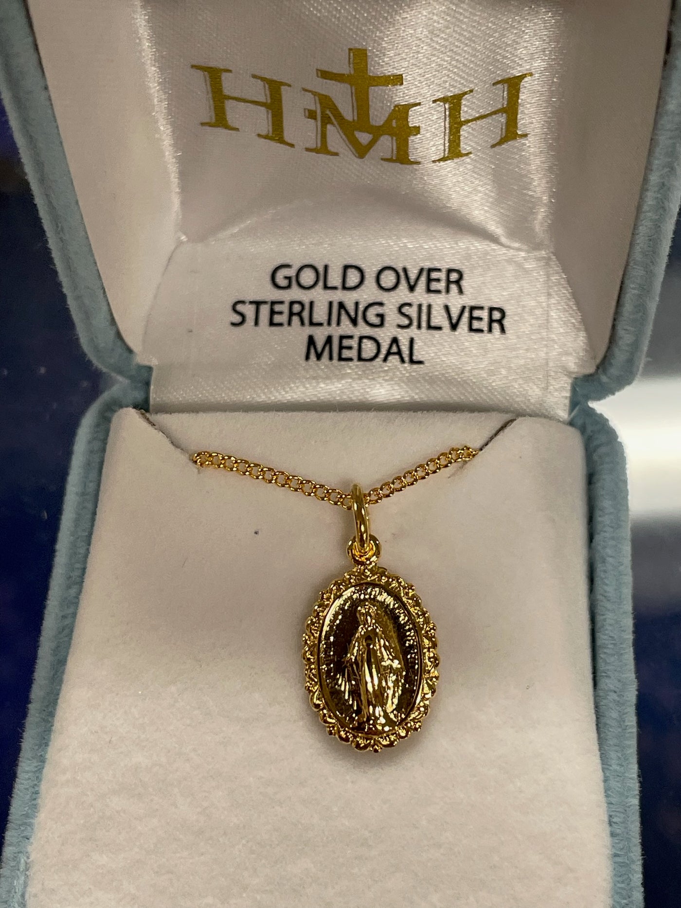 {"id":6727205224515,"title":"16K GP SCALLOP MIRAC 18\"","handle":"16k-gp-scallop-mirac-18","description":"Miraculous Medal Necklace.\u003cbr\u003eBlessed Mother Mary with rays coming out of her extended hands, crushing a serpent under her feet.\u003cbr\u003eOval shaped double sided pendant.\u003cbr\u003e16kt Gold over solid .925 sterling silver.\u003cbr\u003eMedal is die struck.\u003cbr\u003eHand polished and engraved by New England Silversmiths.\u003cbr\u003eDimensions: 0.7\" x 0.4\" 17mm x 11mm)\u003cbr\u003eWeight of medal: 1.3 Grams.\u003cbr\u003e18\" Genuine gold plated curb chain.\u003cbr\u003eMade in USA.\u003cbr\u003eDeluxe velvet gift box.","published_at":"2022-09-01T17:23:01","created_at":"2022-09-01T17:23:01","vendor":"HMH\/Regina Manufacturing","type":"MEDALS","tags":["Chain Size_18\"","Material_Gold over Sterling","Type_Miraculous Medal"],"price":6250,"price_min":6250,"price_max":6250,"price_varies":false,"compare_at_price":null,"compare_at_price_min":0,"compare_at_price_max":0,"compare_at_price_varies":true,"all_variant_ids":[40161465565251],"variants":[{"id":40161465565251,"product_id":6727205224515,"product_handle":"16k-gp-scallop-mirac-18","title":"Default Title","option1":"Default Title","option2":null,"option3":null,"sku":"931-0146","requires_shipping":true,"taxable":true,"featured_image":null,"image_id":null,"available":true,"name":"16K GP SCALLOP MIRAC 18\" - Default Title","options":["Default Title"],"price":6250,"weight":60,"compare_at_price":null,"inventory_quantity":2,"inventory_management":"shopify","inventory_policy":"deny","inventory_in_cart":0,"inventory_remaining":2,"incoming":false,"next_incoming_date":null,"taxable":true,"barcode":null}],"available":true,"images":["\/\/marytown-press-gift-store.myshopify.com\/cdn\/shop\/files\/931-0146.jpg?v=1748377236"],"featured_image":"\/\/marytown-press-gift-store.myshopify.com\/cdn\/shop\/files\/931-0146.jpg?v=1748377236","options":["Title"],"url":"\/products\/16k-gp-scallop-mirac-18"}