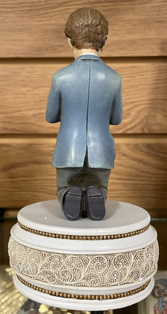 {"id":7382989832259,"title":"PRAYING BOY MUSICAL BLESSINGS","handle":"praying-boy-musical-blessings","description":"First Communion Boy Statue has a wind up crank to play music. The base of the statue says, \"God's Blessings on this day.\" The boy is wearing a suit, kneeling, and praying.","published_at":"2025-03-05T14:58:04","created_at":"2025-03-05T14:58:04","vendor":"Christian Brands","type":"COMMUNION","tags":["COMMUNION","Communion and Confirmation","Style_Boy","Type_Statue"],"price":3799,"price_min":3799,"price_max":3799,"price_varies":false,"compare_at_price":null,"compare_at_price_min":0,"compare_at_price_max":0,"compare_at_price_varies":true,"all_variant_ids":[42142794973251],"variants":[{"id":42142794973251,"product_id":7382989832259,"product_handle":"praying-boy-musical-blessings","title":"Default Title","option1":"Default Title","option2":null,"option3":null,"sku":"990-0155","requires_shipping":true,"taxable":true,"featured_image":null,"image_id":null,"available":true,"name":"PRAYING BOY MUSICAL BLESSINGS - Default Title","options":["Default Title"],"price":3799,"weight":280,"compare_at_price":null,"inventory_quantity":1,"inventory_management":"shopify","inventory_policy":"deny","inventory_in_cart":0,"inventory_remaining":1,"incoming":false,"next_incoming_date":null,"taxable":true,"barcode":null}],"available":true,"images":["\/\/marytown-press-gift-store.myshopify.com\/cdn\/shop\/files\/990-01551.jpg?v=1741640301","\/\/marytown-press-gift-store.myshopify.com\/cdn\/shop\/files\/990-01552.jpg?v=1741640301","\/\/marytown-press-gift-store.myshopify.com\/cdn\/shop\/files\/990-01553.jpg?v=1741640301","\/\/marytown-press-gift-store.myshopify.com\/cdn\/shop\/files\/990-01554.jpg?v=1741640301","\/\/marytown-press-gift-store.myshopify.com\/cdn\/shop\/files\/990-01555.jpg?v=1741640301"],"featured_image":"\/\/marytown-press-gift-store.myshopify.com\/cdn\/shop\/files\/990-01551.jpg?v=1741640301","options":["Title"],"url":"\/products\/praying-boy-musical-blessings"}