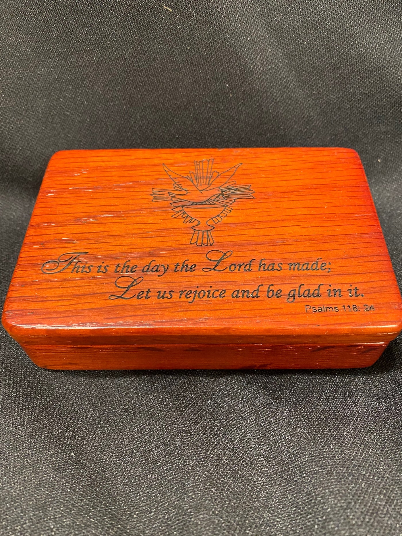 {"id":4490236002371,"title":"ROSEWOOD COMM\/CONF BOX","handle":"rosewood-comm-conf-box","description":"Rose stained Box \u003cbr\u003e\u003cbr\u003eIt could be a Communion or Confirmation gift. The box is lazer cut with a picture of a dove above a chalice. It says, \"This is the day the Lord has made; Let us rejoice and be glad in it\" 4 1\/2\" X 3\" Inside of box has a blue fabric lining and is a half inch deep.","published_at":"2020-06-05T11:22:49","created_at":"2020-06-05T11:22:49","vendor":"Devonte Trading Corporation","type":"COMMUNION","tags":["COMMUNION","Communion and Confirmation","Type_Box\/Case"],"price":2899,"price_min":2899,"price_max":2899,"price_varies":false,"compare_at_price":null,"compare_at_price_min":0,"compare_at_price_max":0,"compare_at_price_varies":true,"all_variant_ids":[31823086878787],"variants":[{"id":31823086878787,"product_id":4490236002371,"product_handle":"rosewood-comm-conf-box","title":"Default Title","option1":"Default Title","option2":null,"option3":null,"sku":"990-0046","requires_shipping":true,"taxable":true,"featured_image":null,"image_id":null,"available":false,"name":"ROSEWOOD COMM\/CONF BOX - Default Title","options":["Default Title"],"price":2899,"weight":180,"compare_at_price":null,"inventory_quantity":0,"inventory_management":"shopify","inventory_policy":"deny","inventory_in_cart":0,"inventory_remaining":0,"incoming":false,"next_incoming_date":null,"taxable":true,"barcode":""}],"available":false,"images":["\/\/marytown-press-gift-store.myshopify.com\/cdn\/shop\/products\/990-00461.jpg?v=1594140538","\/\/marytown-press-gift-store.myshopify.com\/cdn\/shop\/products\/990-00462.jpg?v=1594140538"],"featured_image":"\/\/marytown-press-gift-store.myshopify.com\/cdn\/shop\/products\/990-00461.jpg?v=1594140538","options":["Title"],"url":"\/products\/rosewood-comm-conf-box"}