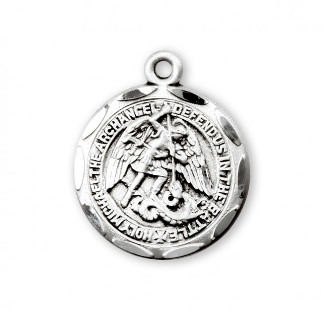 {"id":6727208108099,"title":"SS ST MICHAEL ROUND 18\"","handle":"ss-st-michael-round-19","description":"Saint Michael round medal-pendant.\u003cbr\u003eSolid .925 sterling silver.\u003cbr\u003eDetail depicts Archangel Michael defeating the devil.\u003cbr\u003eSaint Michael the Archangel is the Patron Saint of Police, Law Enforcement.\u003cbr\u003eMedal is die struck.\u003cbr\u003eHand polished and engraved by New England Silversmiths.\u003cbr\u003eDimensions: 0.8\" x 0.6\" (20mm x 16mm)\u003cbr\u003eWeight of medal: 2.6 Grams.\u003cbr\u003e18\" Genuine rhodium plated curb chain.\u003cbr\u003eMade in USA.\u003cbr\u003eDeluxe velvet gift box.\u003cbr\u003eMedal has a blank back.","published_at":"2022-09-01T17:24:50","created_at":"2022-09-01T17:24:50","vendor":"HMH\/Regina Manufacturing","type":"MEDALS","tags":["Chain Size_18\"","Material_Sterling Silver","Type_Saint Medals"],"price":5850,"price_min":5850,"price_max":5850,"price_varies":false,"compare_at_price":null,"compare_at_price_min":0,"compare_at_price_max":0,"compare_at_price_varies":true,"all_variant_ids":[40161470185539],"variants":[{"id":40161470185539,"product_id":6727208108099,"product_handle":"ss-st-michael-round-19","title":"Default Title","option1":"Default Title","option2":null,"option3":null,"sku":"945-1317","requires_shipping":true,"taxable":true,"featured_image":null,"image_id":null,"available":true,"name":"SS ST MICHAEL ROUND 18\" - Default Title","options":["Default Title"],"price":5850,"weight":50,"compare_at_price":null,"inventory_quantity":2,"inventory_management":"shopify","inventory_policy":"deny","inventory_in_cart":0,"inventory_remaining":2,"incoming":false,"next_incoming_date":null,"taxable":true,"barcode":null}],"available":true,"images":["\/\/marytown-press-gift-store.myshopify.com\/cdn\/shop\/files\/S1634.jpg?v=1746822020","\/\/marytown-press-gift-store.myshopify.com\/cdn\/shop\/files\/S1634X.jpg?v=1746822020","\/\/marytown-press-gift-store.myshopify.com\/cdn\/shop\/files\/S163418_1.jpg?v=1746822020"],"featured_image":"\/\/marytown-press-gift-store.myshopify.com\/cdn\/shop\/files\/S1634.jpg?v=1746822020","options":["Title"],"url":"\/products\/ss-st-michael-round-19"}